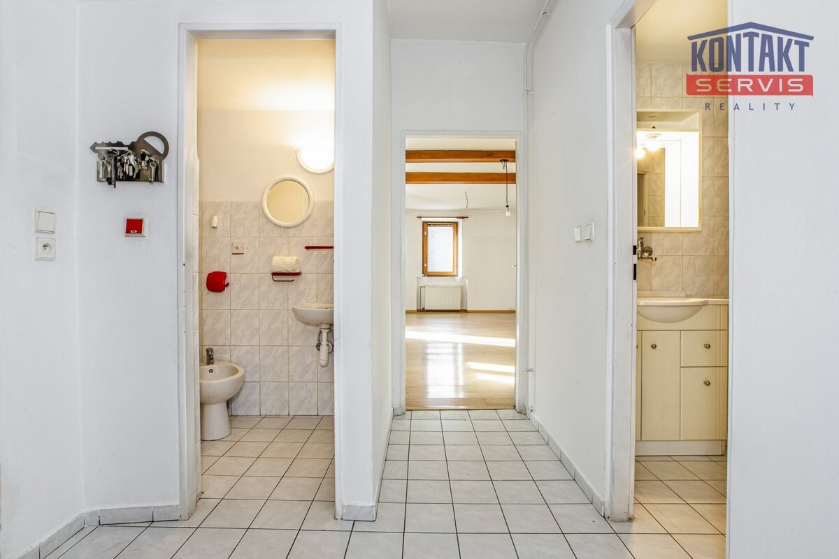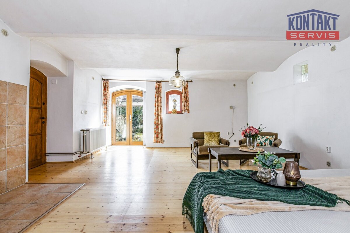 Exkluzivně nabízíme ke koupi řadový rodinný dům, nacházející se nedaleko historického centra Veselí nad Lužnicí, ulice Podhájkem. Vzhledem ke své poloze a charakteru je dům vhodný pro trvalé bydlení, rekreaci, případně i ke komerčnímu využití. Rodinný dům byl do současné podoby modernizován od devadesátých let minulého století (podlahy, rozvody elektřiny, vody i odpadů, okna, střecha a pod.). Obytná část je rozdělena do dvou samostatných objektů, když v přední části se nachází byt 2+kk s koupelnou, toaletou, technickou místností a garáží ( celkově 115 m2). Přes malebný uzavřený dvůr navazuje druhá budova, ve které je vybudována garsoniéra s vlastním sociálním zázemím (41 m2) a navazující technické zázemí domu (sklad a dílna o výměře 26 m2). V obou objektech jsou k dispozici prostorné půdní prostory, vhodné k výstavbě podkrovních obytných prostor. Dům je napojen na obecní vodovod a kanalizaci. Zavedena je elektřina i plyn. Topení je řešeno dvěma plynovými kotli s napojením do radiátorů. Zadní část parcely uzavírá na vedlejší budovou navazující menší zahrada. Celková výměra pozemku je 453 m2, z toho reálná zastavěná plocha obou budov je cca 145, resp. 98 m2. Z důvodu zák. povinnosti uvádíme energetickou třídu G. Na koupi nemovitosti je možné zajistit též výhodné úvěrování. Informace k nemovitosti poskytne a osobní prohlídku nemovitosti zajistí makléř zakázky.